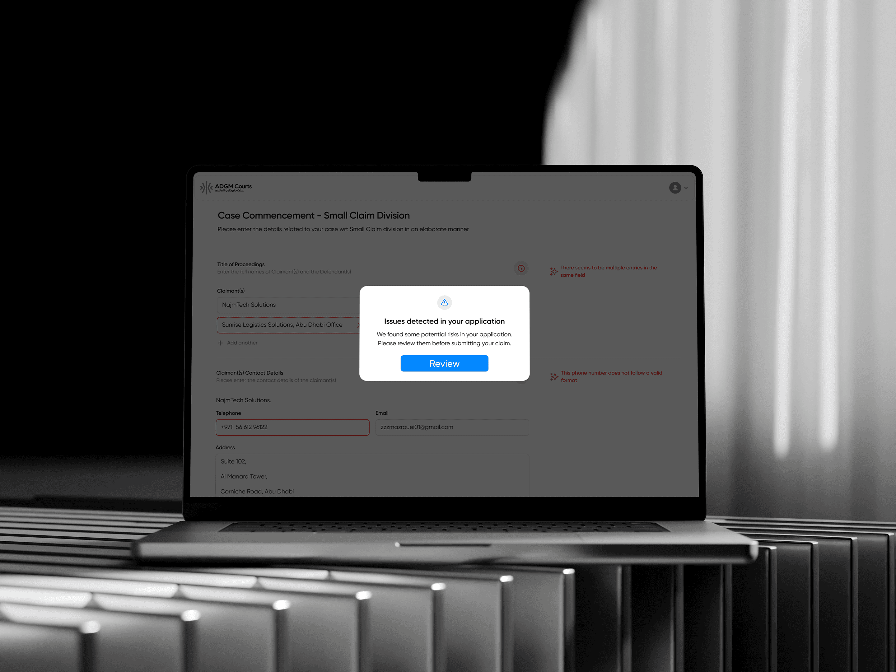 A significant challenge was the case file submission process within ADGM Courts. The existing system lacked clarity and failed to capture accurate data, leading to inefficiencies and potential compliance risks.