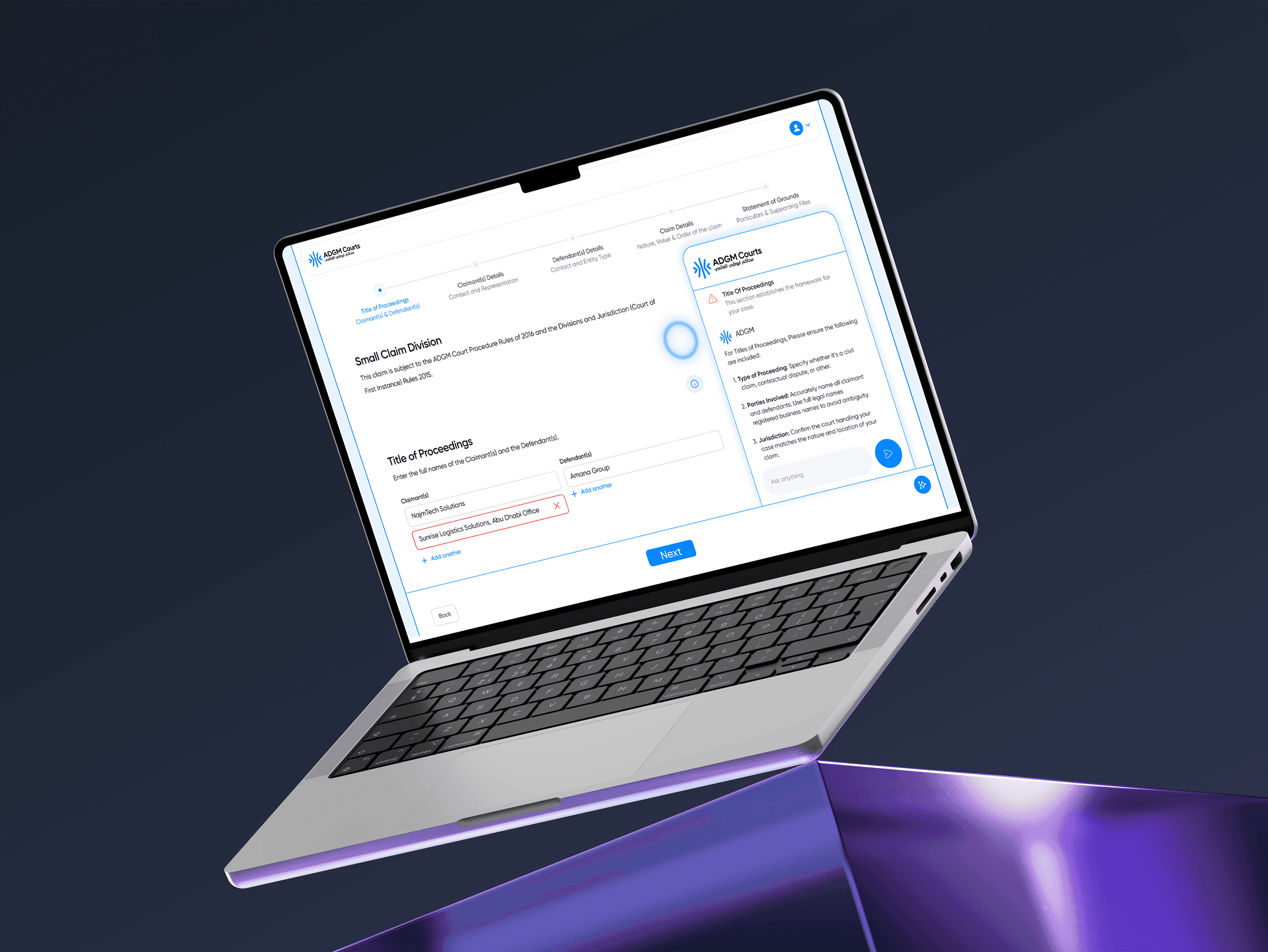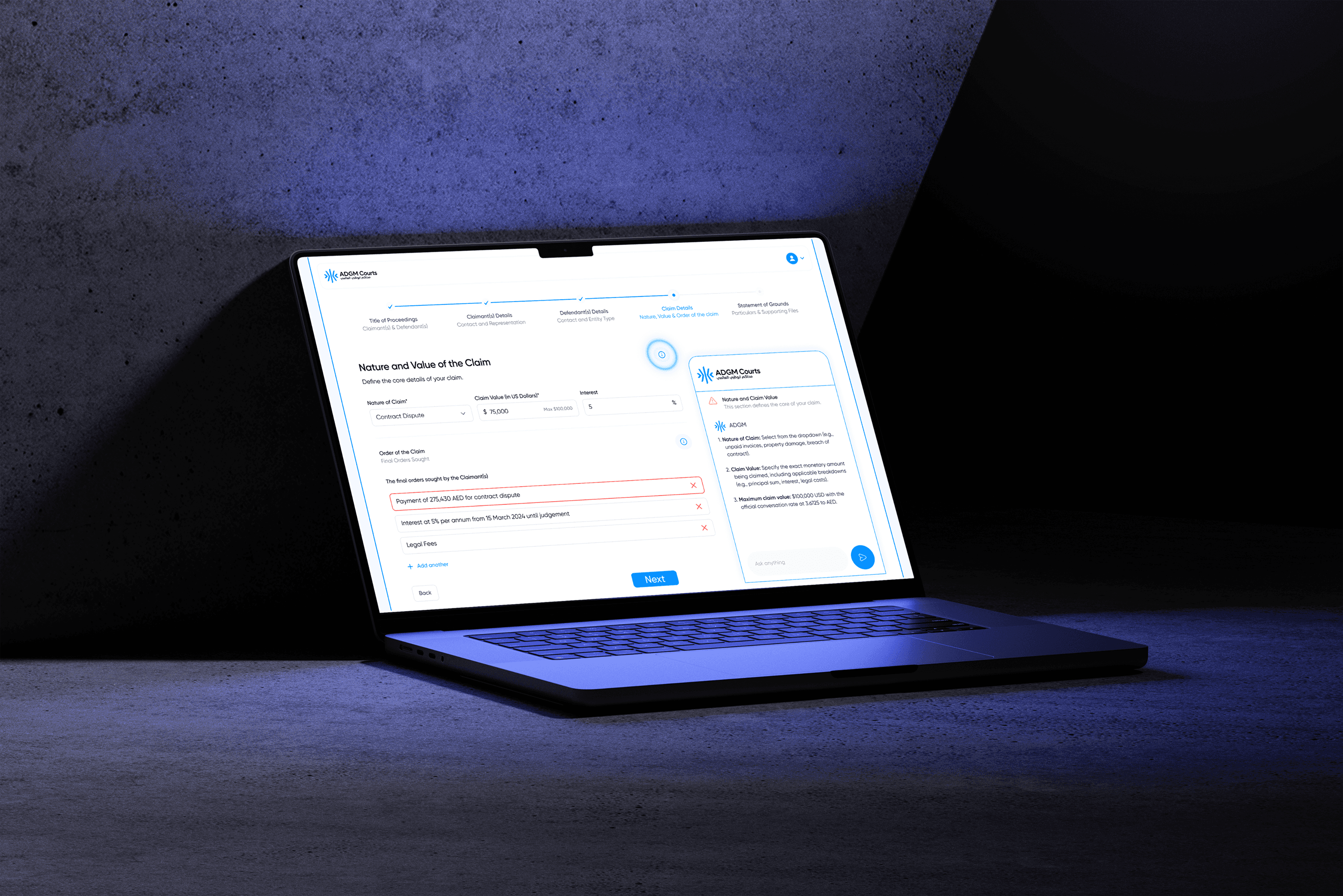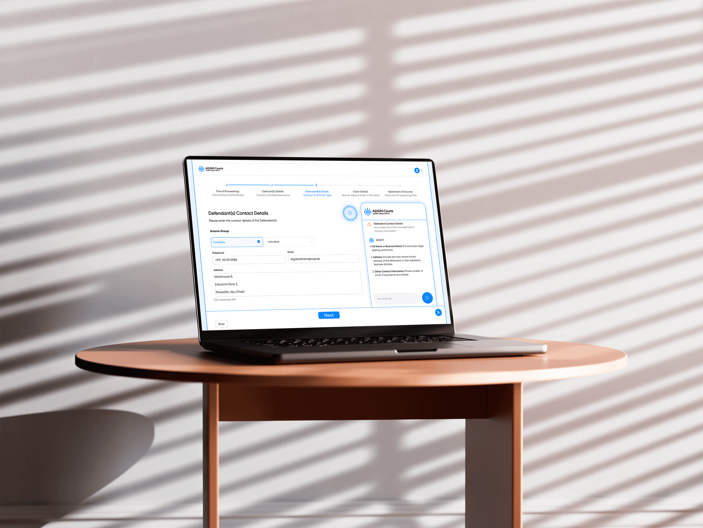 In addition, enhancements to the platform’s navigation and user guidance made it easier for both individuals and legal professionals to complete submissions smoothly, improving overall efficiency and compliance within ADGM Courts.