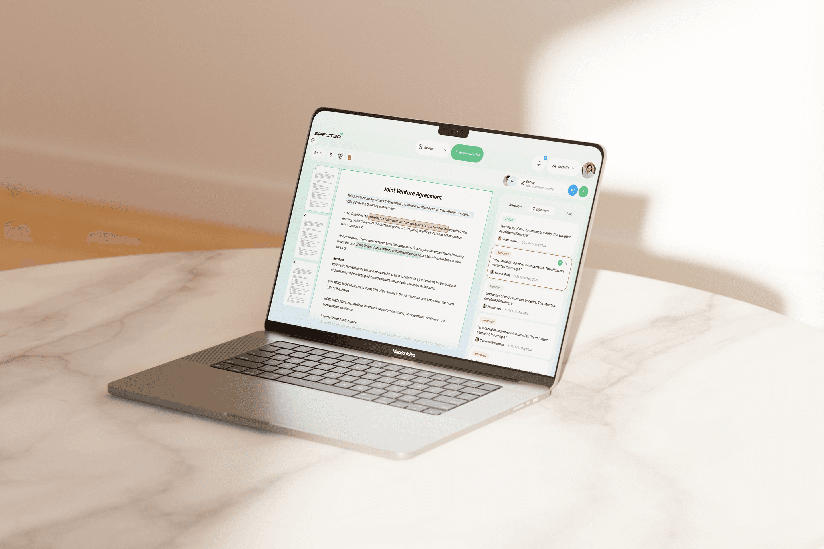 A key challenge with Specter was creating an AI legal platform that stayed secure and compliant while keeping the interface simple and easy to use. We needed to balance complex workflows with clear, straightforward features that users could trust.